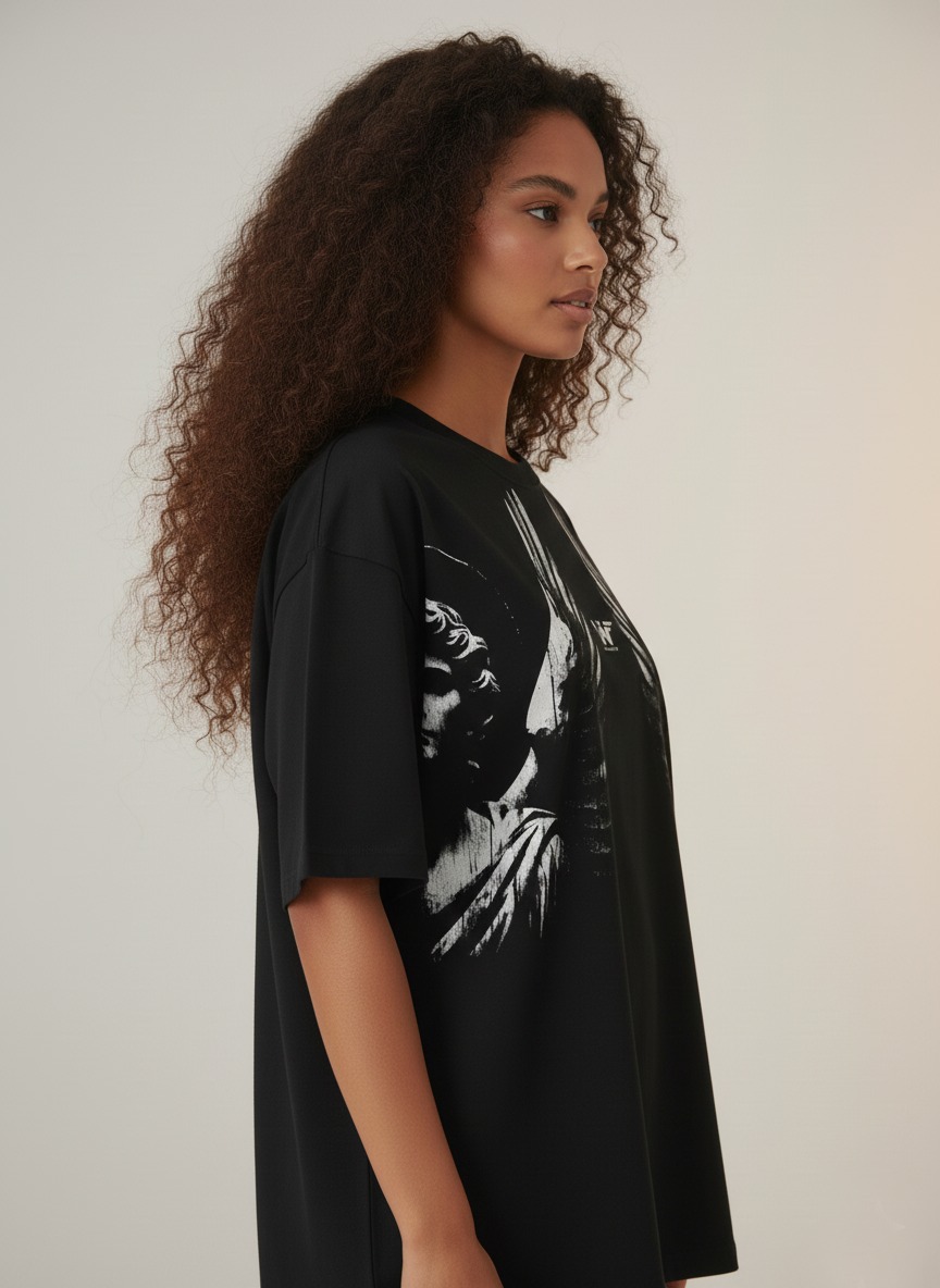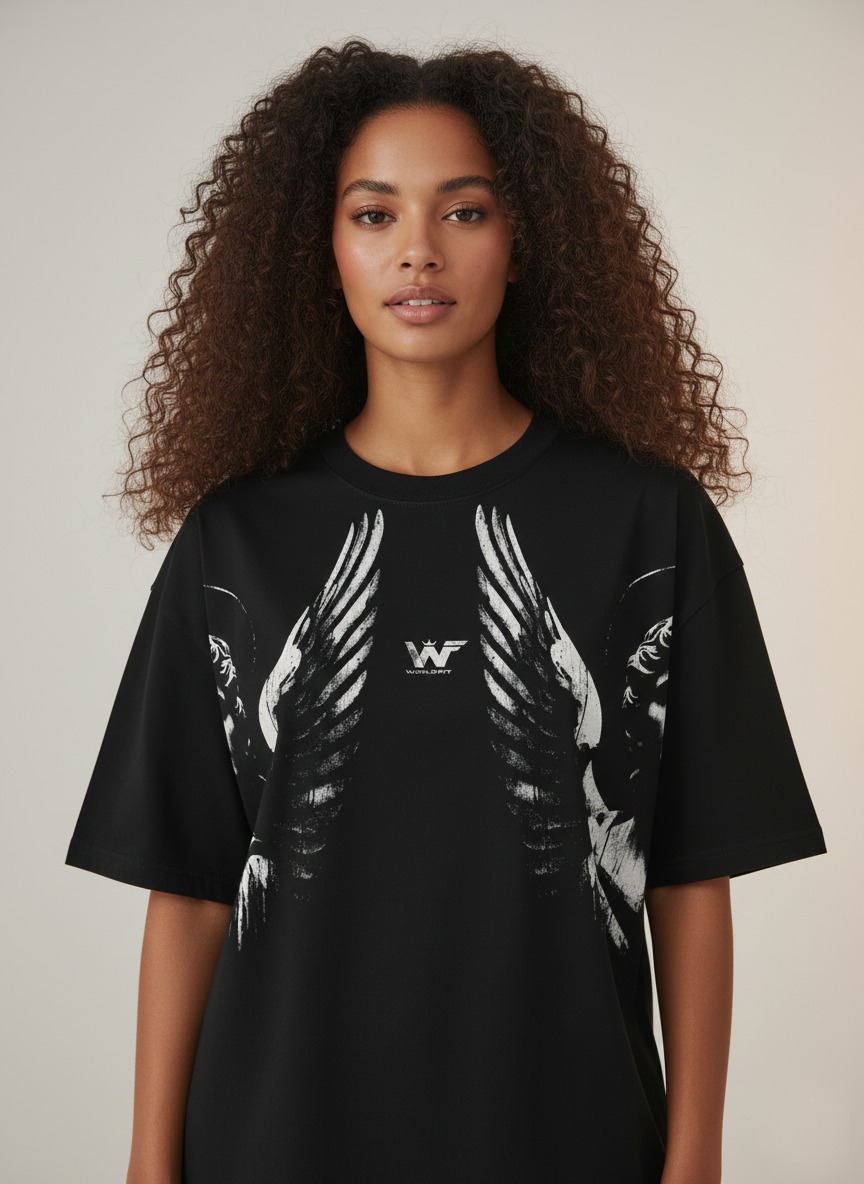 Horma overzise tela fría de 170 gramos de peso cuello en reep estampados termofijados en dtf ideal para el uso urbano o deportivo.