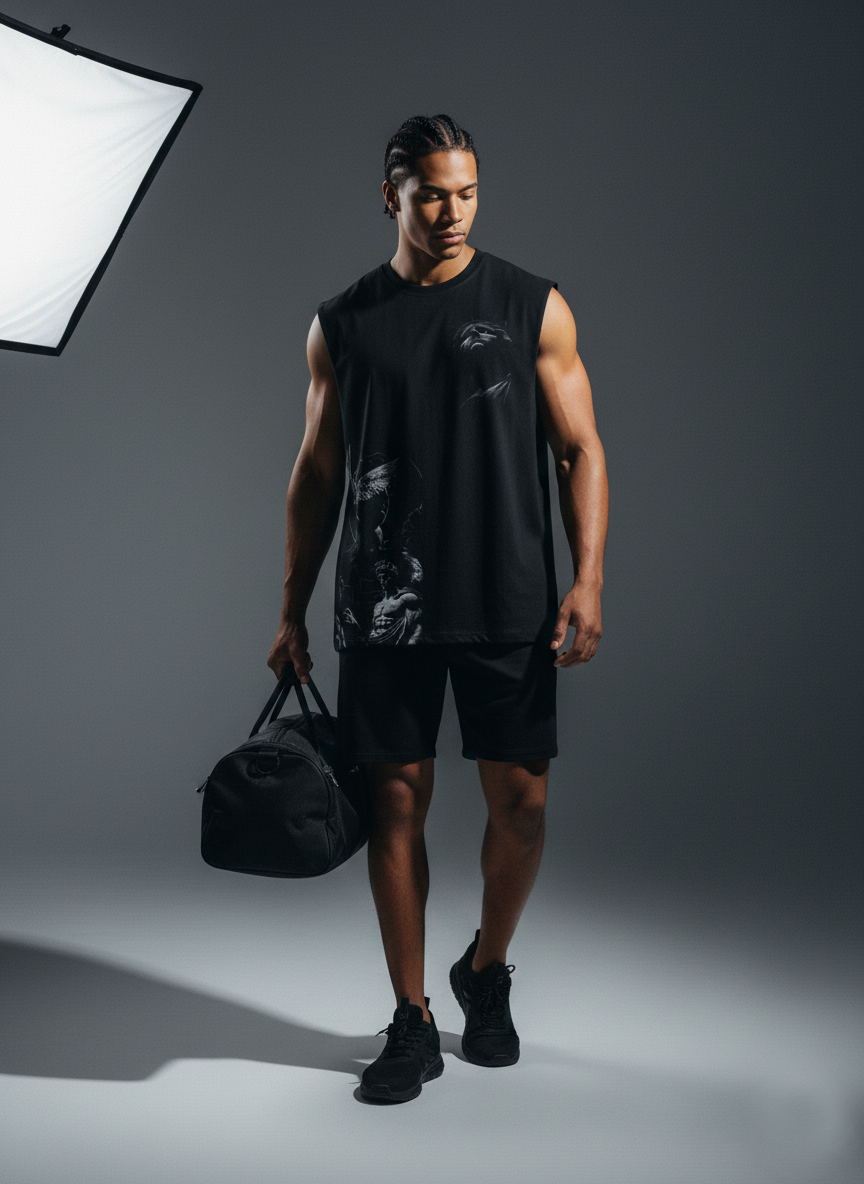 Camisillas en material boston flex semilicradas, horma oversize, manga rangla, estampado termofijado dtf.
